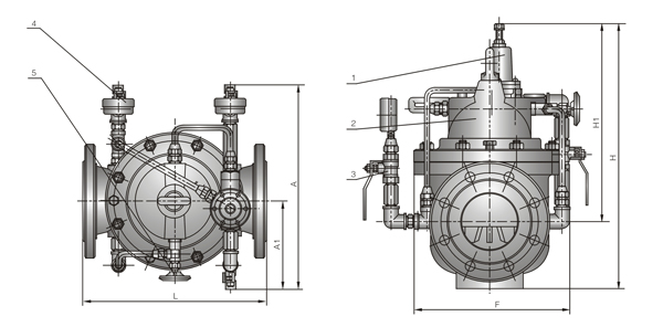1、導閥2、主閥3、球閥4、壓力表5、針閥