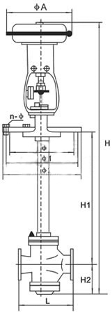 由調(diào)節(jié)器來的信號壓力輸入氣動薄膜執(zhí)行機構(gòu)的氣室,產(chǎn)生推力,通過連接桿件帶動閥芯,閥芯位置的變化使閥的流通截面積變化,實現(xiàn)對介質(zhì)流量的調(diào)節(jié)。