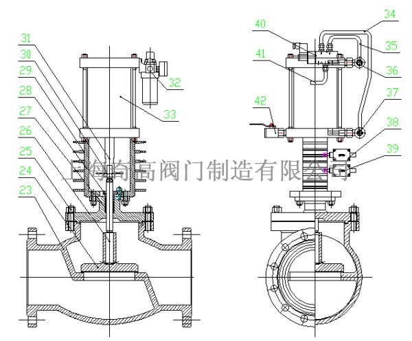 2.閥門(mén)執(zhí)行機(jī)構(gòu)采用液壓式,一旦電磁換向閥接受信號(hào)液壓源換向,執(zhí)行機(jī)構(gòu)彈簧和電磁換向閥液壓源能使閥門(mén)迅速關(guān)閉,關(guān)閉時(shí)間0.5~1秒。